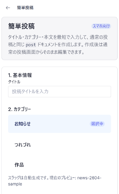 スマホからでもなるべく迷わず更新できる形を試しています。